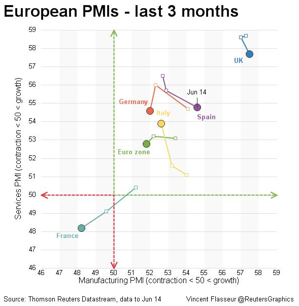 EZ – Jun: Markit PMI slows as French activity drops; 52.8 from 53.5 / R / WSJ * *