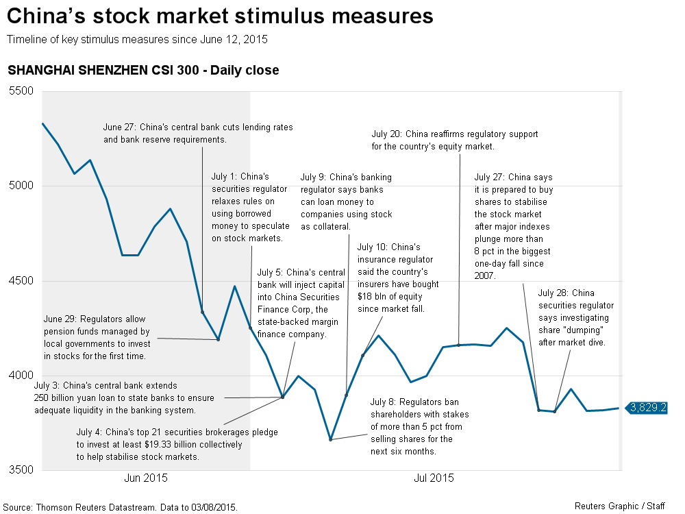 China – ‘Botched stockmarket rescue’ e *